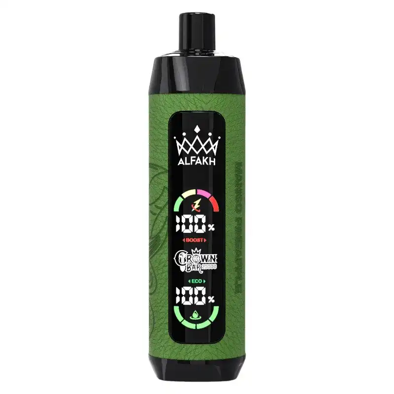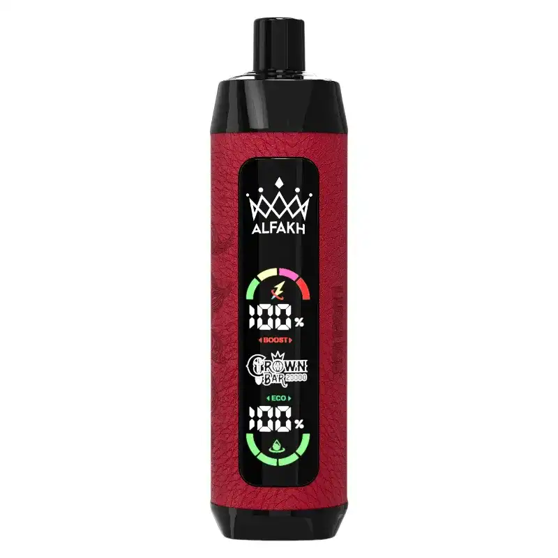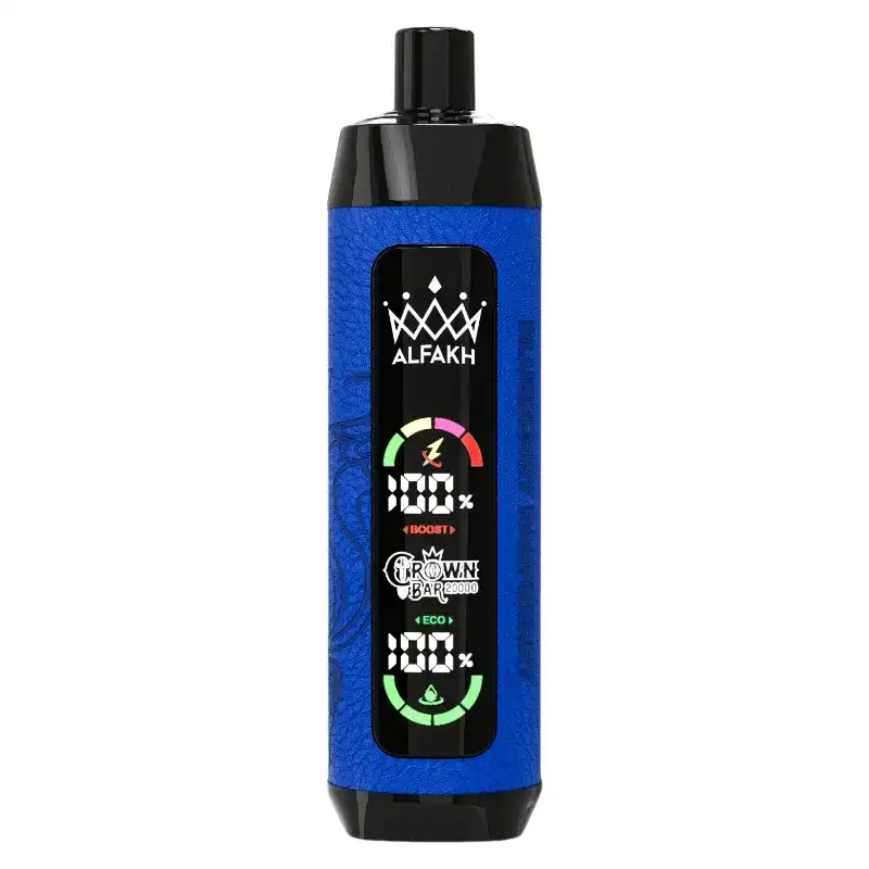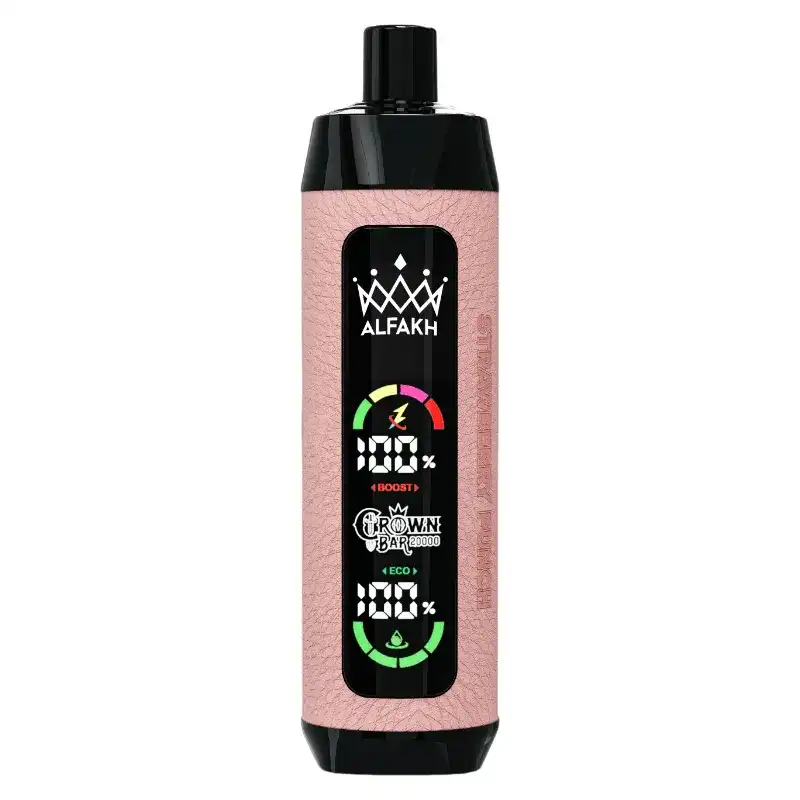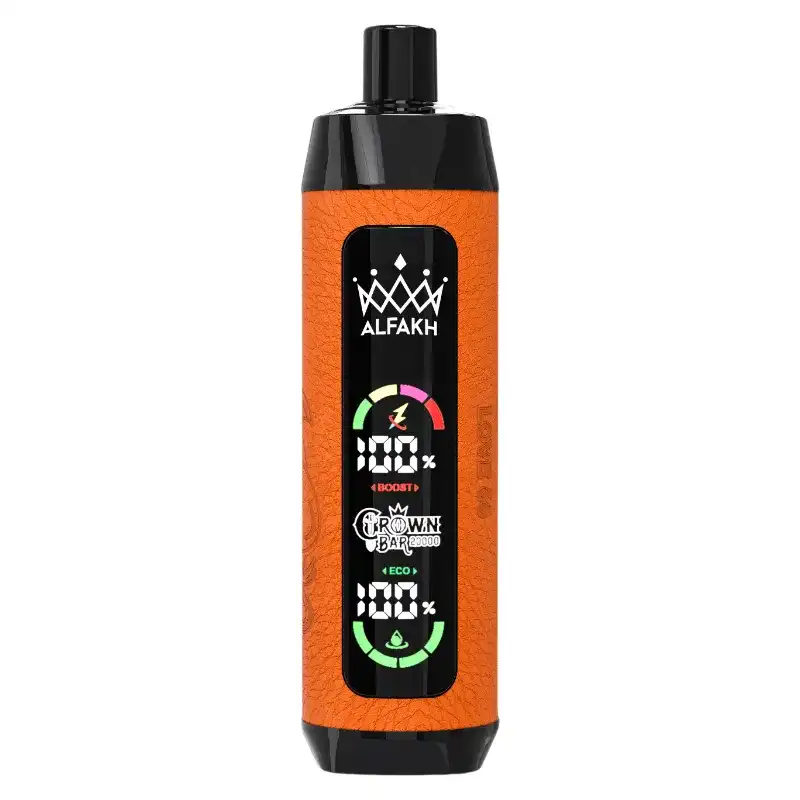 The Al Fakher Crown Bar 20K (20000) Puffs Disposable Vape is designed for vapers seeking maximum power, extended usage, and flavor intensity. With up to 20000 puffs and 30ML of e-liquid, it provides long-lasting performance. The 1 ohmmesh coil enhances both flavor and vapor production, the LCD screen makes it easy to monitor both battery life and remaining e-juice. The  leather wrap adds a touch of elegance, ensuring a premium feel and look.